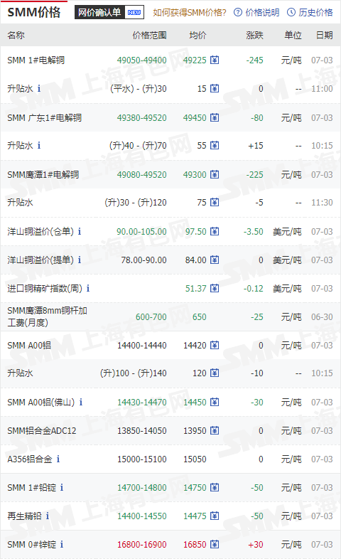俊霖合金解讀:7月3日有色金屬行情