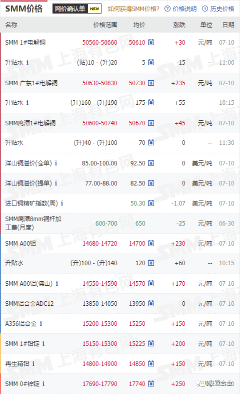 更多金屬行情……請(qǐng)關(guān)注上海有色金屬網(wǎng)