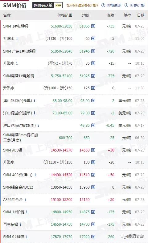 俊霖合金解讀:7月23日有色金屬行情