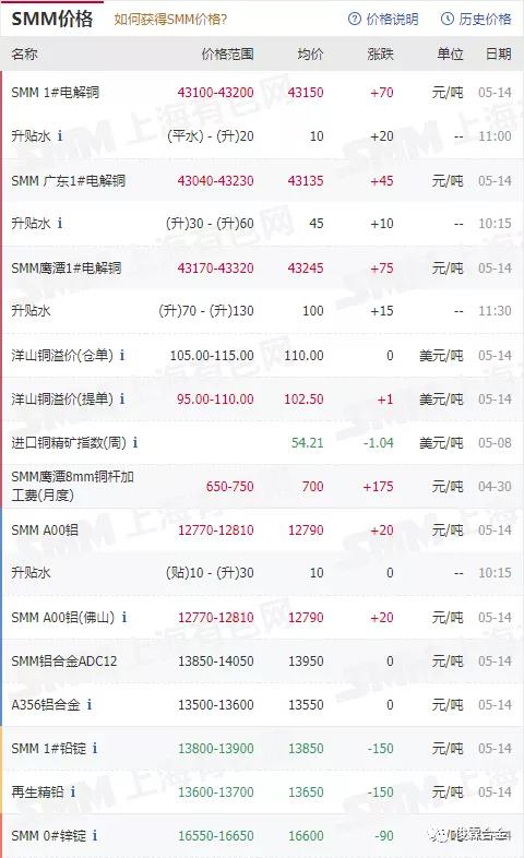 俊霖合金解讀:5月14日有色金屬行情