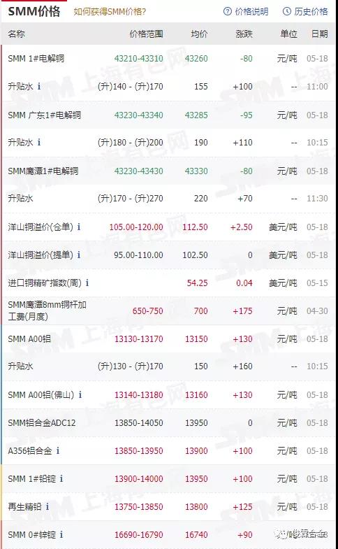 俊霖合金解讀:5月18日有色金屬行情
