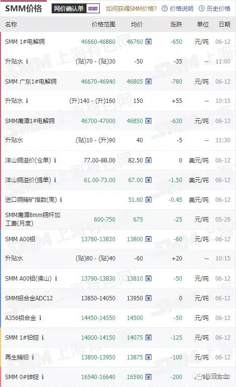 俊霖合金解讀:6月12日有色金屬行情