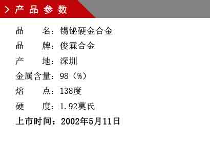俊霖錫鉍硬金合金是鉍同錫、銻、銦等金屬組成的合金,稱之為錫鉍合金。錫鉍合金屬于環(huán)保型合金.常溫下,呈固態(tài)、銀白色熔點(diǎn)為138℃,固液體積收縮率為0.051%。